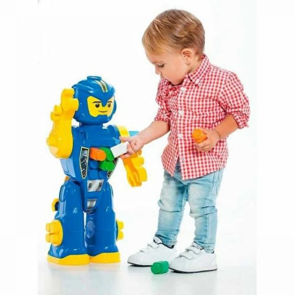 Este Robot de 15 piezas Transformer es un divertido robot articulable de dos caras que incluye 15 piezas en un compartimento interior. Además, este robot puede emitir hasta 5 sonidos diferentes. Con el robot de 15 piezas Transformer tu niño se lo pasará en grande jugando con él a la vez que construye. Moltó. Ref.: 18466. Edad recomendada: +2 años.