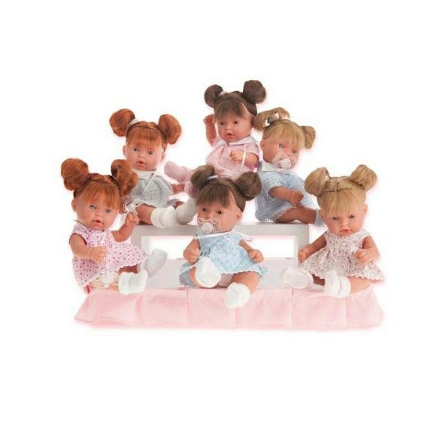 Tita Coletas viene con diferentes características. Estas muñecas de Antonio Juan son diferentes unas de otras: pelo negro, rubio, pelirrojo, con vestido rosa, azul…pero todas incluyen chupete!. Tienen un tamaño de 26 cm y el cuerpo de vinilo. Se sirven por separado. Cuando estés realizando el pedido, indícanos qué modelo desea recibir. Muñecas Antonio Juan. Ref.: 4059. Edad orientativa: +3 años. Producto no recomendado para niños menores de 3 años ADVERTENCIA: Puede contener piezas pequeñas que podrían provocar asfixia. Puedes consultar todas las advertencias de seguridad en ESPECIFICACIONES