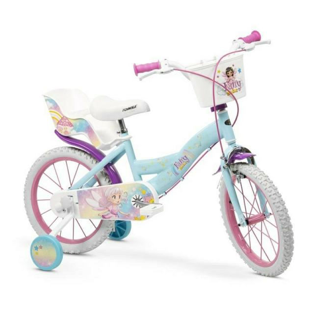 Te gustan las hadas mágicas Esta bicicleta de 16 pulgadas es la tuya. El modelo Fairy Magic combina estampados de hadas con colores azules y púrpuras. El cuadro es de acero, para una mayor resistencia a los golpes y al tiempo. Incluye ruedecitas de apoyo que estabilizan al peque y lo ayudan en el aprendizaje. El freno delantero es de caliper, mientras que el trasero es de tambor. En la parte trasera, se incluye un asiento para transportar a tu muñeca favorita. Esta bicicleta está orientada para niños de 110-120 cm de altura. Dimensiones de la bicicleta: 111 cm de largo, 69-75 cm de altura de manillar a suelo y 54-57 cm de sillín a suelo. Toimsa. Ref.: 16223. Edad recomendada: +5 años. Para conocer mejor la relación de pulgadas y altura del niño, acude a nuestra Guía de medidas de bicicletas. Producto no recomendado para niños menores de 3 años ADVERTENCIA: Puede contener piezas pequeñas que podrían provocar asfixia. Puedes consultar todas las advertencias de seguridad en ESPECIFICACIONES